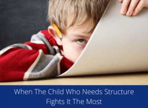 The truth is, sometimes, the child who needs structure is the one who fights it the most. I hear it all the time. Every doctor, every therapist, every educator… At some point in discussing my youngest son’s learning differences and special needs, every expert has made the same generalized recommendation, with varying degrees of concern … Continue reading When The Child Who Needs Structure Fights It The Most